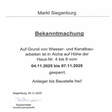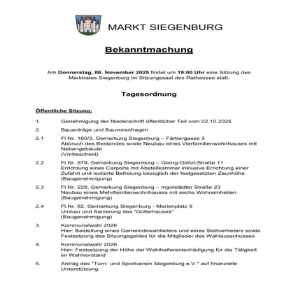 Die nächste Marktgemeinderatssitzung findet am 6.11.25 statt/KE