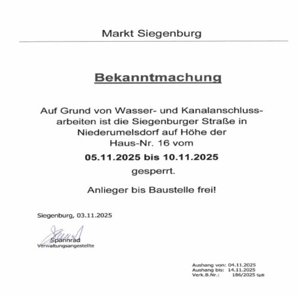 auch in Niederumelsdorf sind Kanalbauarbeiten