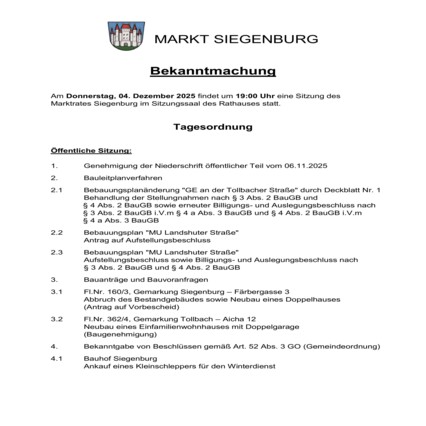 Die nächste Marktgemeinderatssitzung findet am 4.12.25 statt.