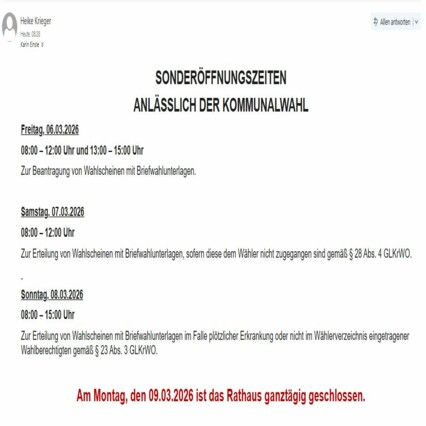 Für die anstehenden Wahlen gibt es Sonderöffnungszeiten im Rathaus