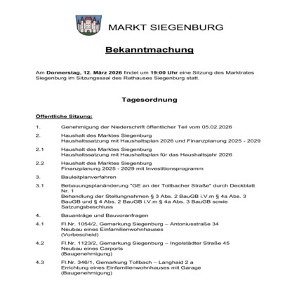 Die nächste Marktgemeinderatssitzung findet am 12. März statt
