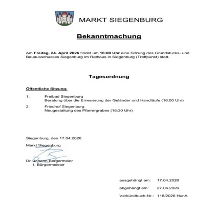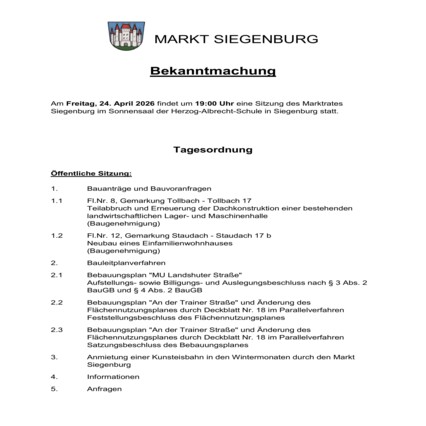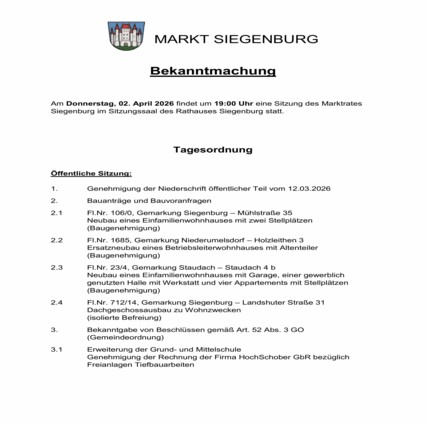 Die nächste Marktgemeinderatssitzung findet am 02 April statt.